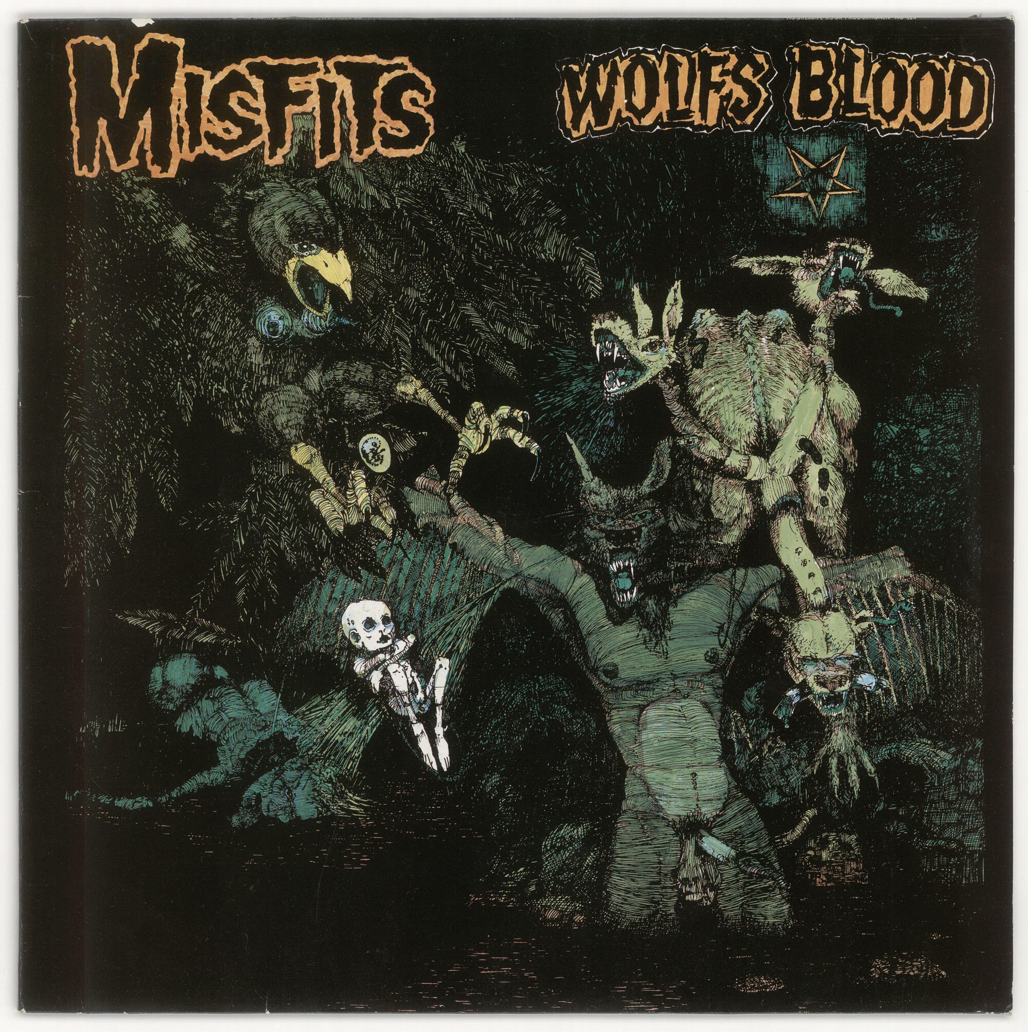 MISFITS Wolfs Blood / Earth AD LP (Aggressive Rock Produktionen 1988)Scarce "green beast" version! The final pressing among the German originals. Despite being a later press, this one's arguably the most sought-after thanks to its off-kilter coloring and presumably lower press run. In its final oddball twist, title details are printed on all three spines! Jacket is in Mint Minus (M-) condition. Vinyl is in Very Good Plus (VG+) condition.Best offer over $350. Offers accepted through Sunday, November 30th, noon CST.Email offers to [email protected] with WOLF-GREEN in the title or DM me on Instagram.