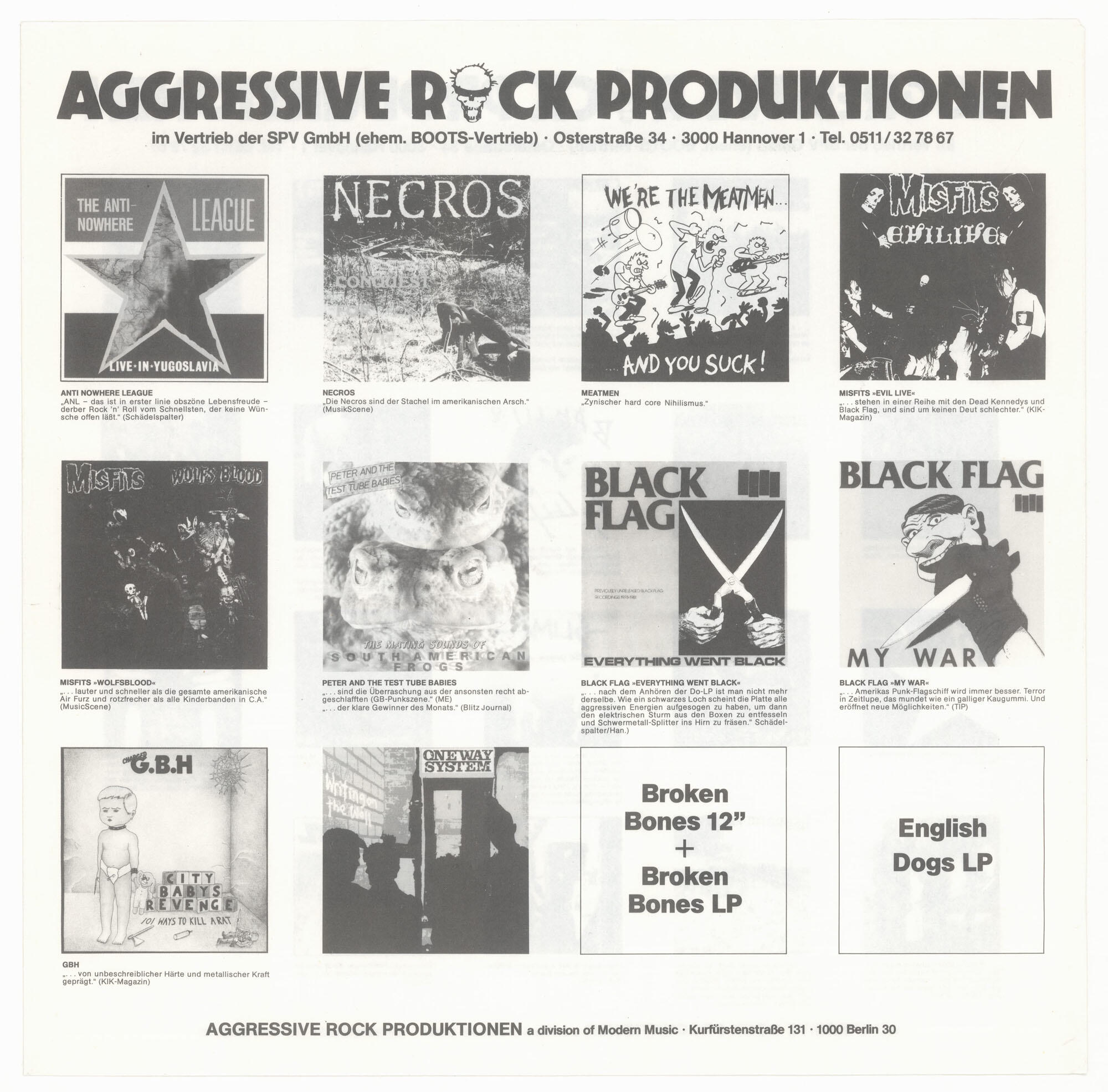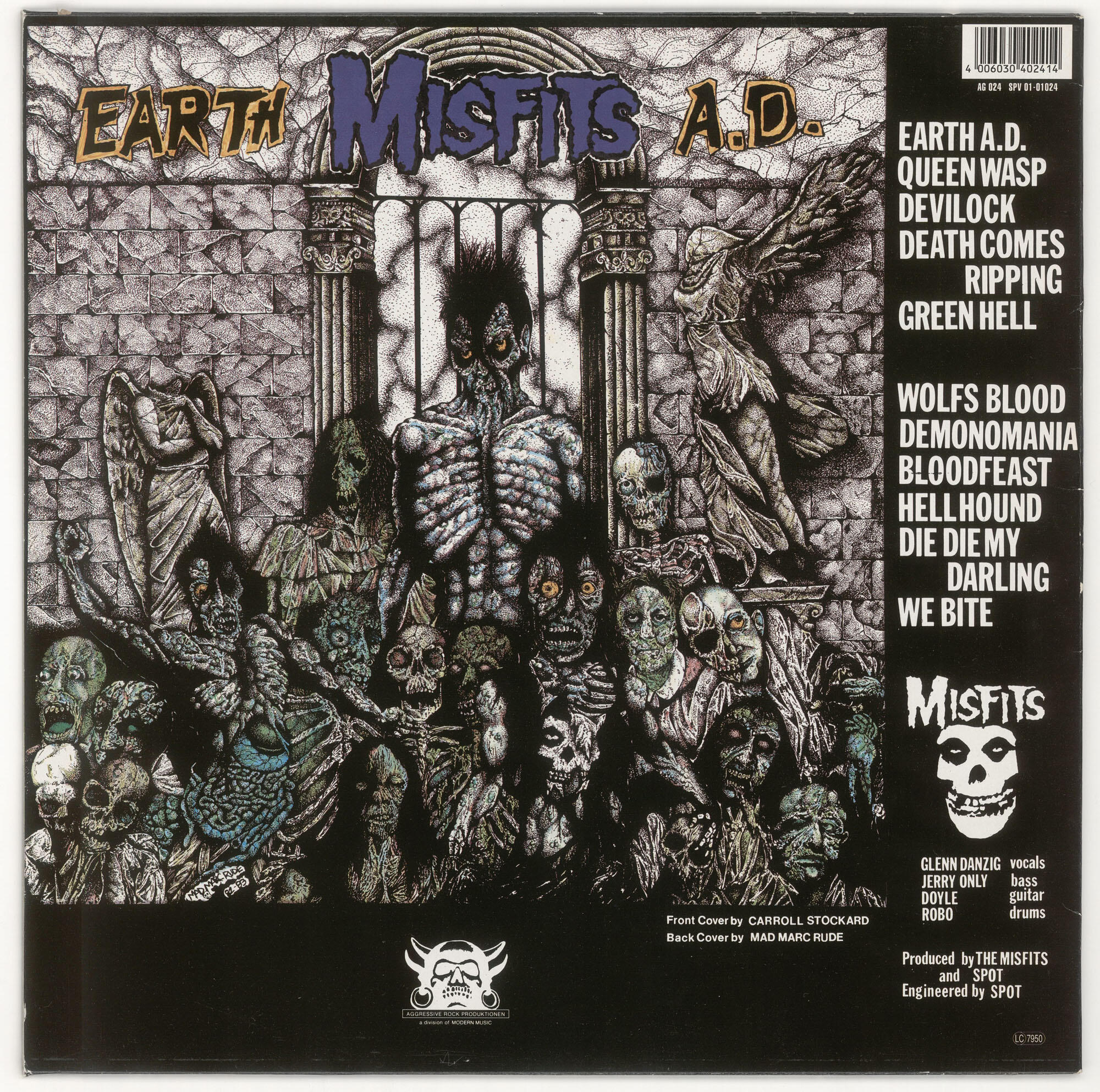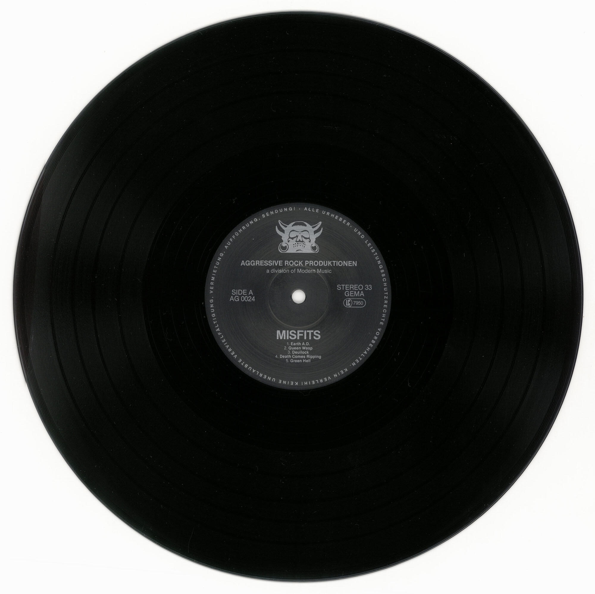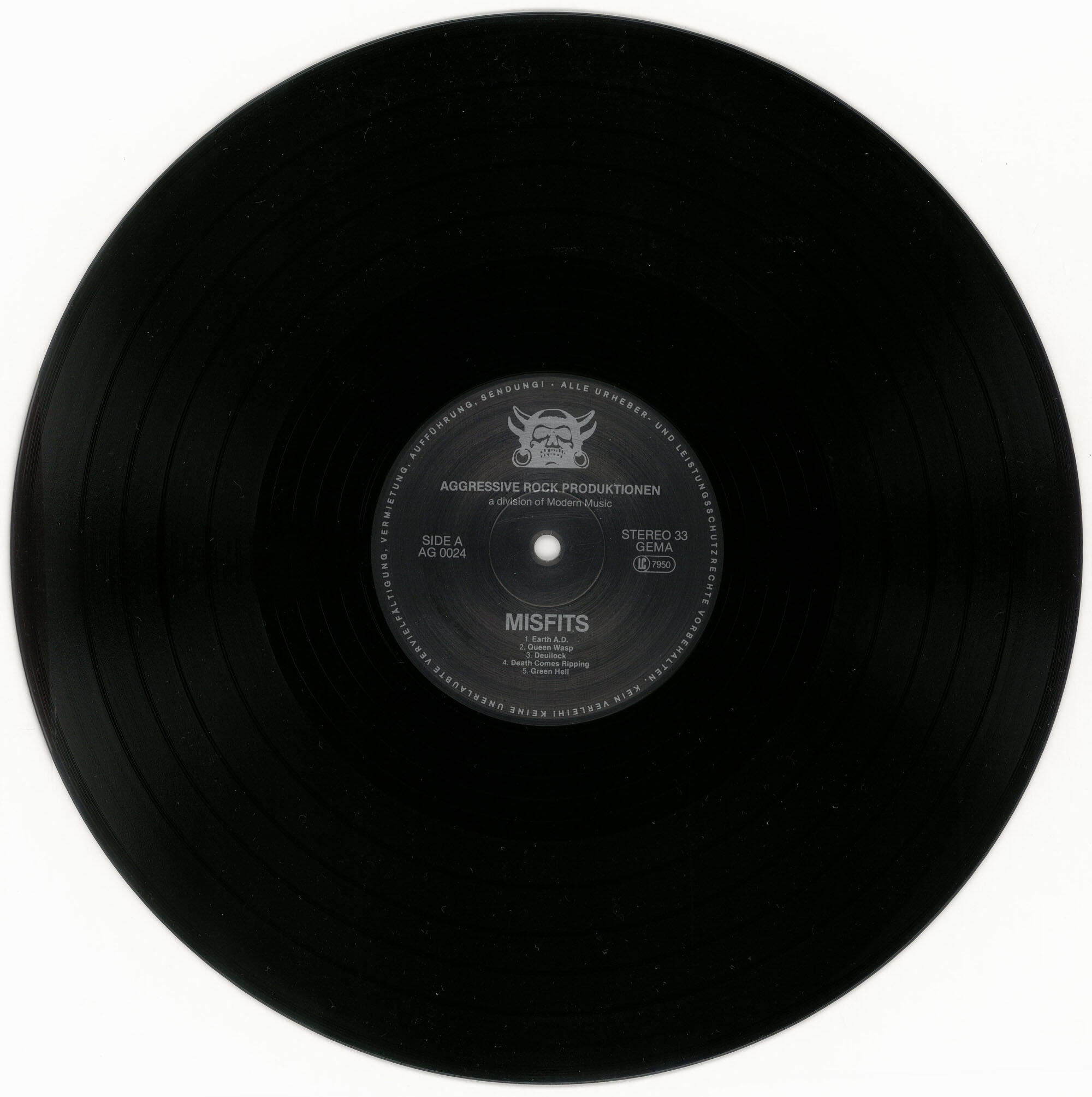 MISFITS Wolfs Blood / Earth AD LP (Aggressive Rock Produktionen 1984)Silver label variant of second German pressing (as above) with Osterstraße address on jacket and double-sided printed inner sleeve. Jacket is in Excellent (EX) condition. Vinyl is in Very Good Plus (VG+) condition.Best offer over $150. Offers accepted through Sunday, November 30th, noon CST.Email offers to [email protected] with WOLF-SILVER in the title or DM me on Instagram.