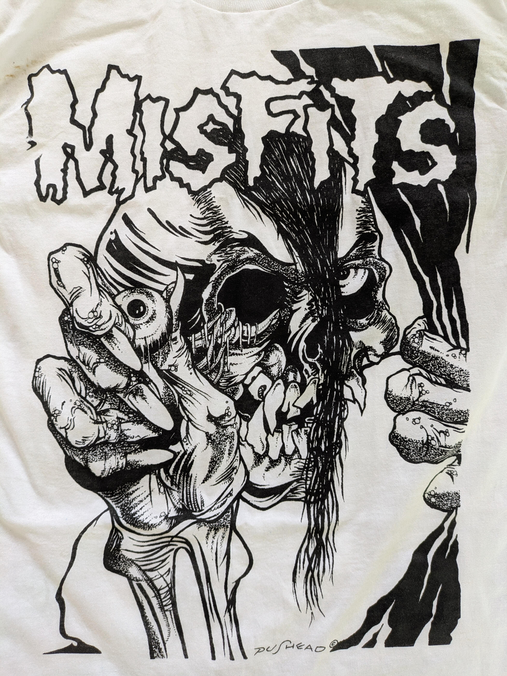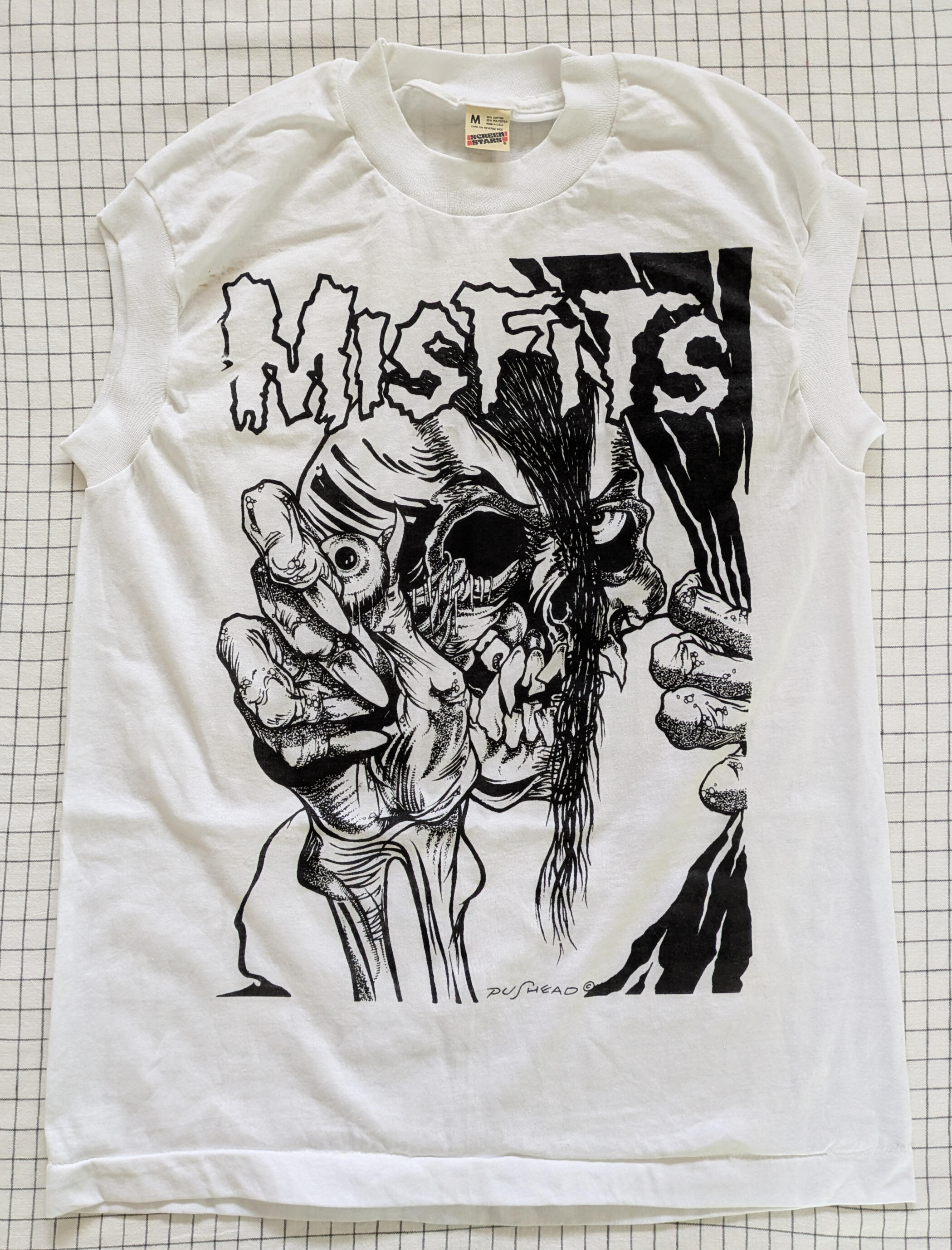 MISFITS "Evil Eye" t-shirtOriginal Plan 9 issue, and a real looker from the mid-80s! Screen Stars size M measures 17.5" pit-to-pit and 26" from top of collar to bottom hem. As-new, unworn condition with a small (likely removable) stain near top left corner of the "M" in MISFITS. Suffice to say, this particular shirt style allows for maximum flexing.Best offer over $400. Offers accepted through Sunday, April 19th, noon CST.Email offers to [email protected] with EVIL-EYE in the title or DM me on Instagram.