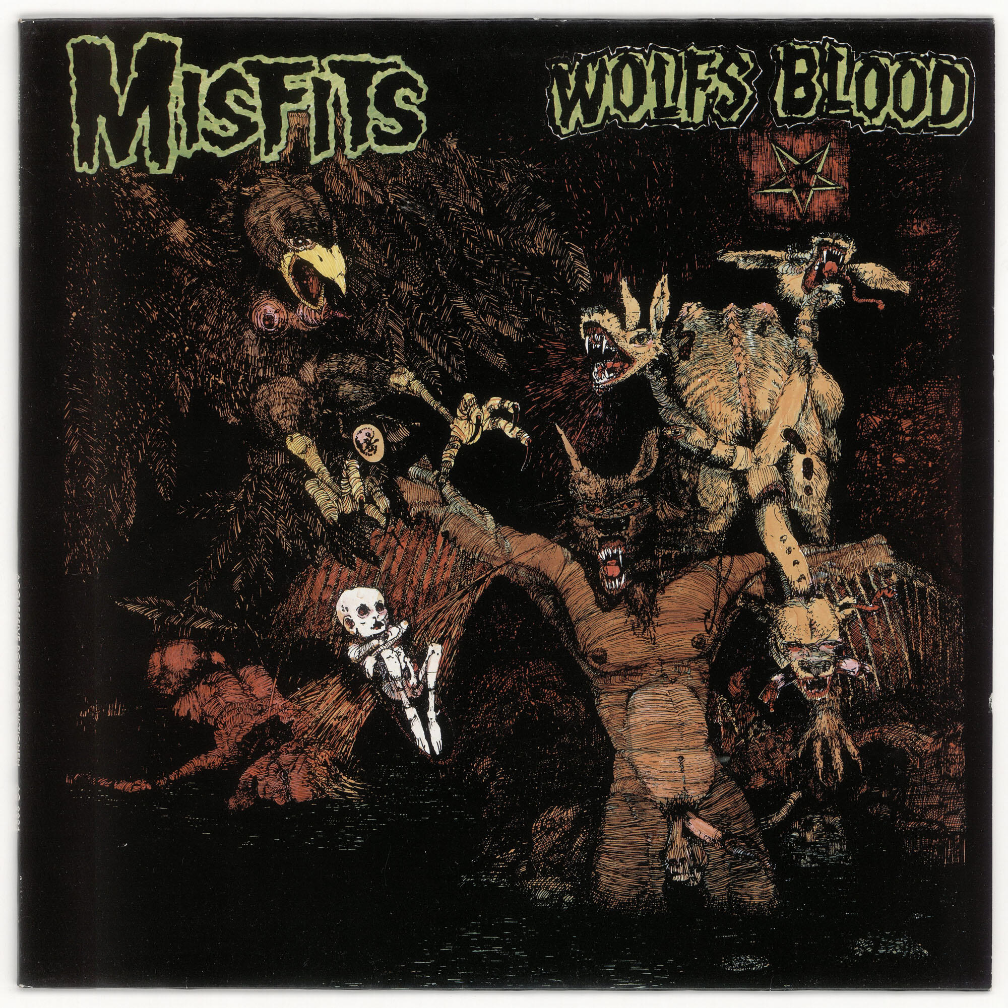 MISFITS Wolfs Blood / Earth AD LP (Aggressive Rock Produktionen 1988)Scarce "green beast" version! The final pressing among the German originals. Despite being a later press, this one's arguably the most sought-after thanks to its off-kilter coloring and presumably lower press run. In its final oddball twist, title details are printed on all three spines! Jacket is in Mint Minus (M-) condition. Vinyl is in Very Good Plus (VG+) condition.Best offer over $350. Offers accepted through Sunday, November 30th, noon CST.Email offers to [email protected] with WOLF-GREEN in the title or DM me on Instagram.