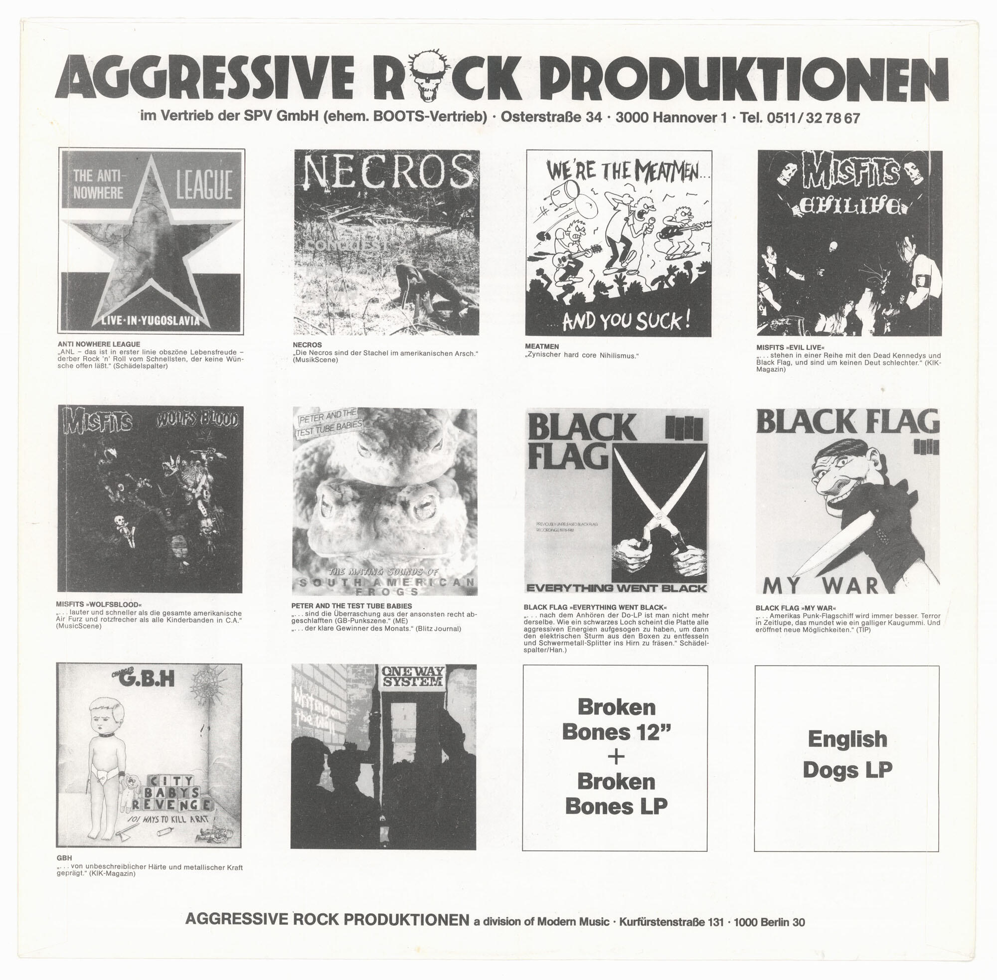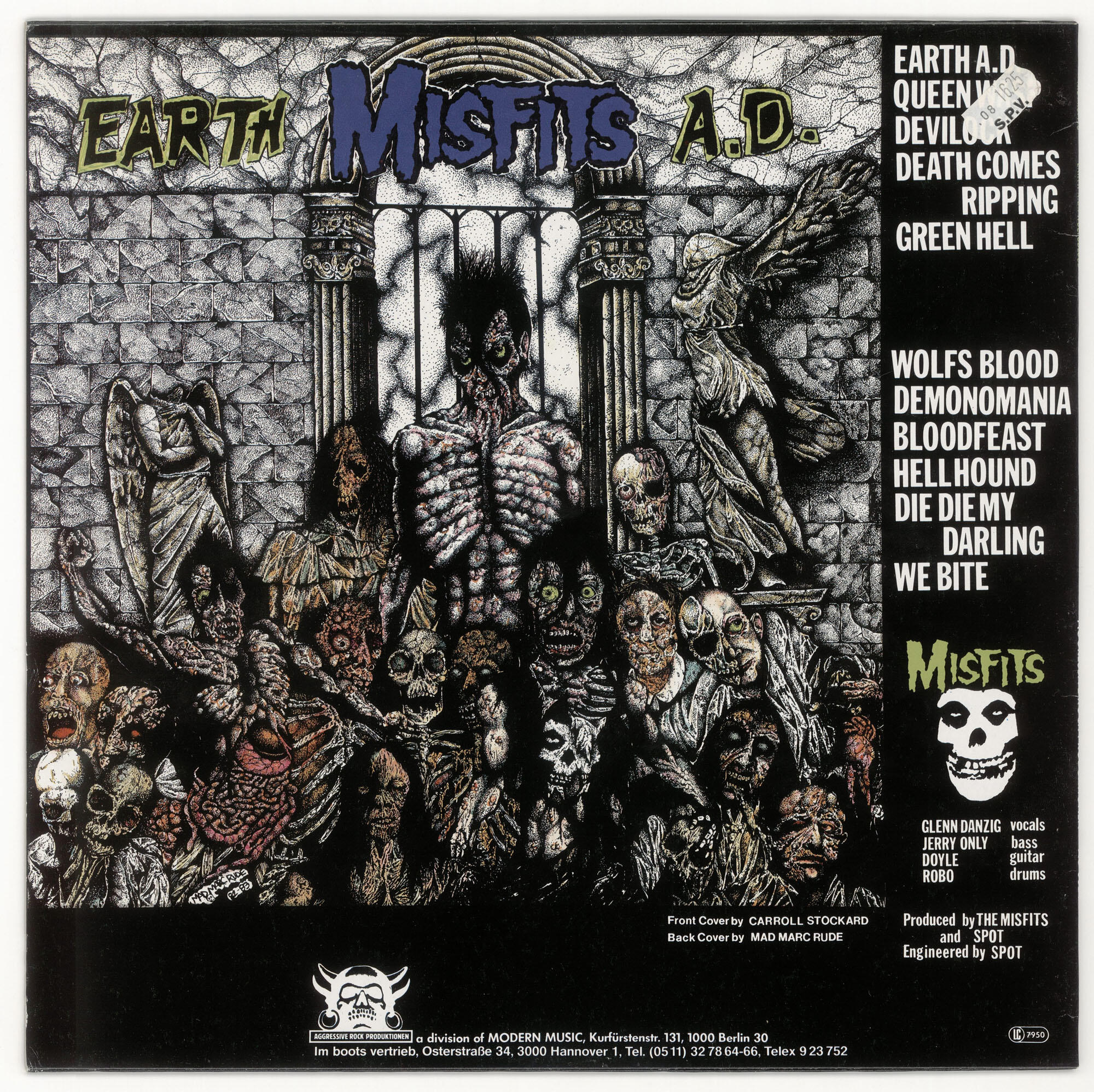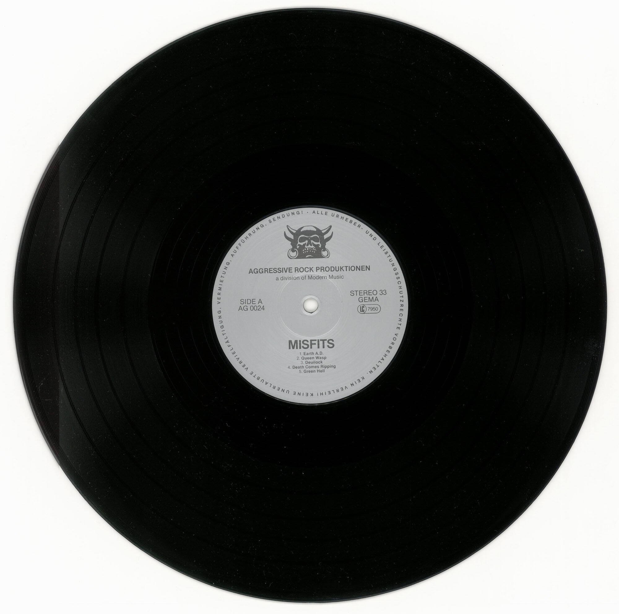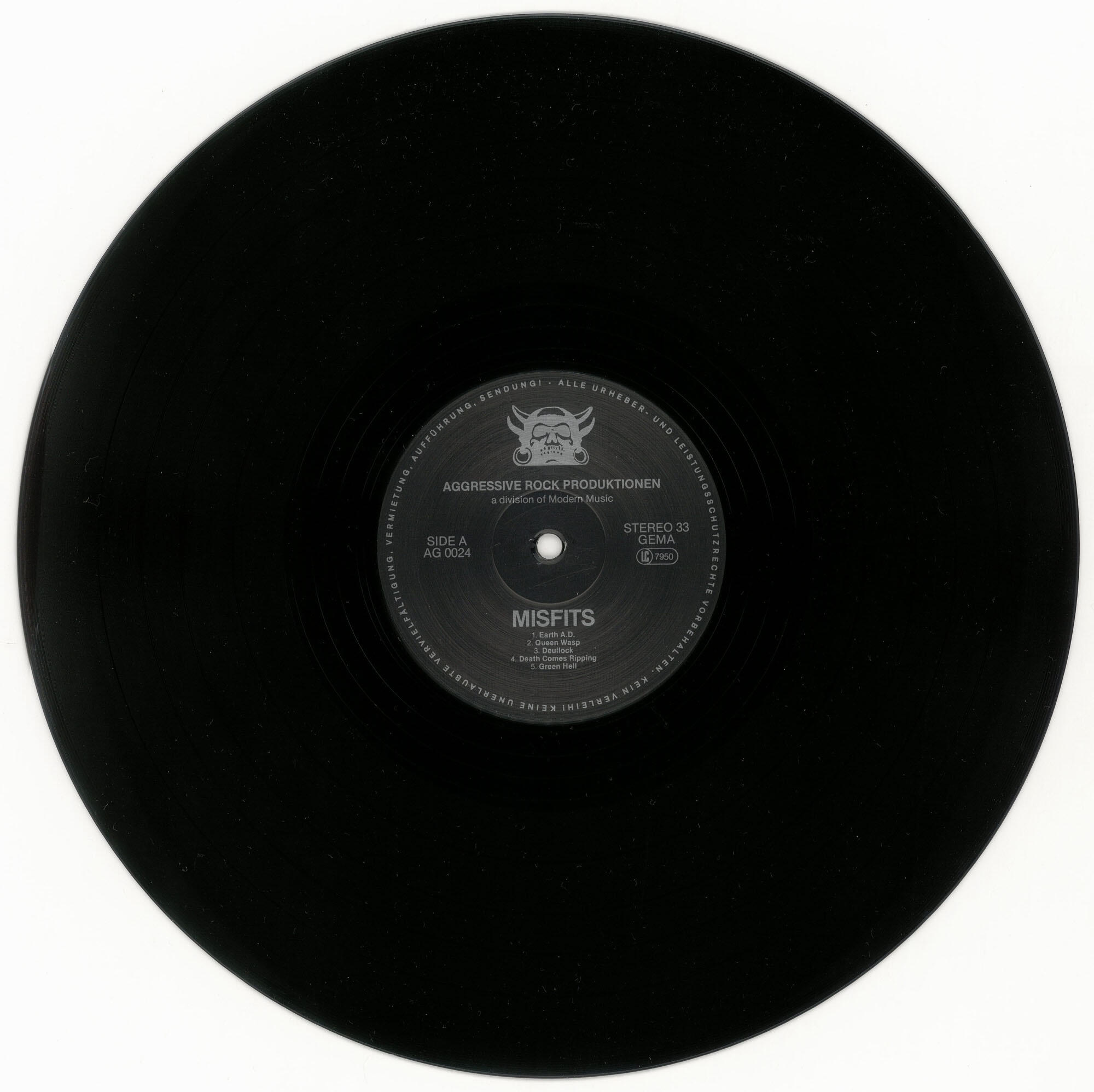 MISFITS Wolfs Blood / Earth AD LP (Aggressive Rock Produktionen 1984)Silver label variant of second German pressing (as above) with Osterstraße address on jacket and double-sided printed inner sleeve. Jacket is in Excellent (EX) condition. Vinyl is in Very Good Plus (VG+) condition.Best offer over $150. Offers accepted through Sunday, November 30th, noon CST.Email offers to [email protected] with WOLF-SILVER in the title or DM me on Instagram.